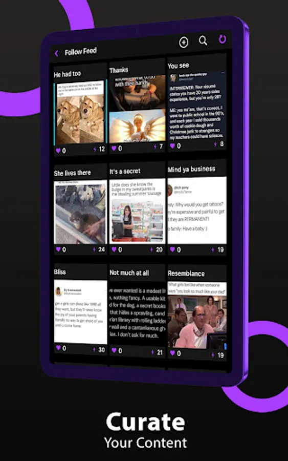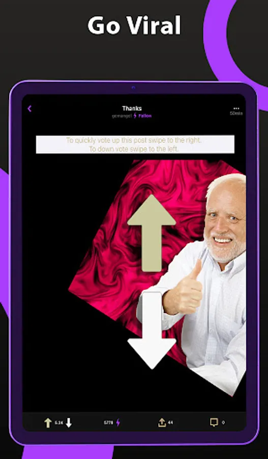 The Dungeon features a super fun left-right swipe voting system. You can vote, comment, and share all posts in the Newest and Rising tabs. Every day, winners will be automatically selected based on their overall performance.