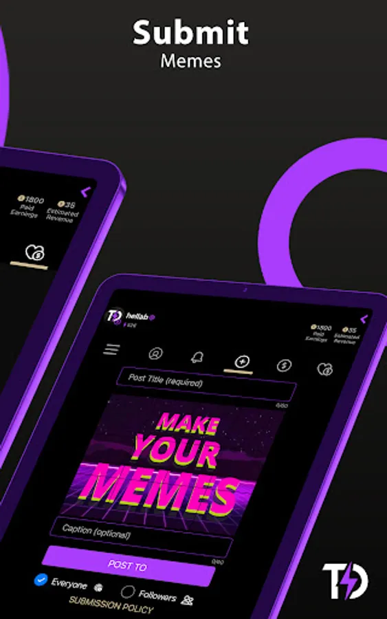 On the Submission tab in the main menu, you can upload, title, and caption your meme or photo. Once the post is live, it will appear in The Dungeon in the chronological Newest feed, ready to shine.