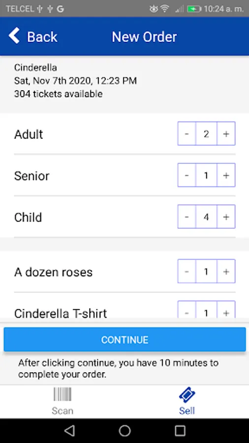 * Process ticket orders with available merchandise add-ons