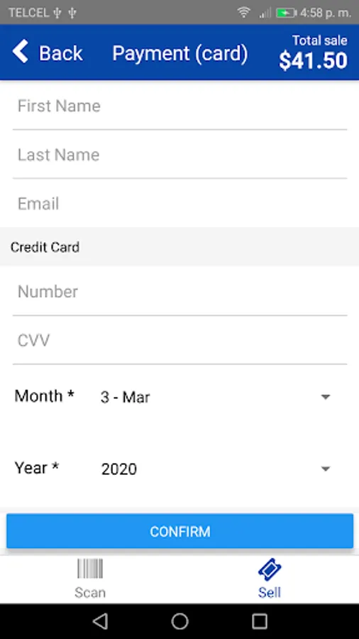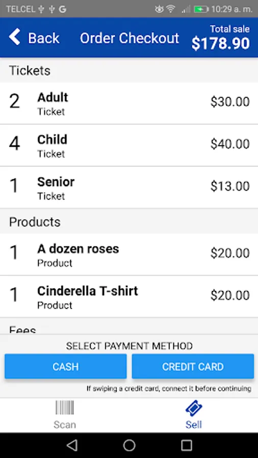 * Sales app available for both cash and credit card