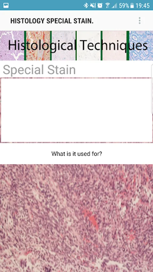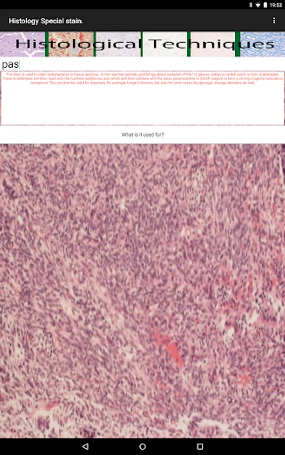 Want to know what special stain to use?. Well this app provides some detail on why a histology special stain is used and what it does. This bitesize answer provides a quick and ready resource in the palm of your hand.