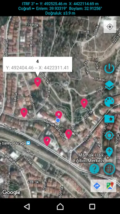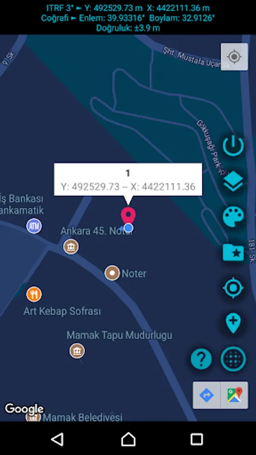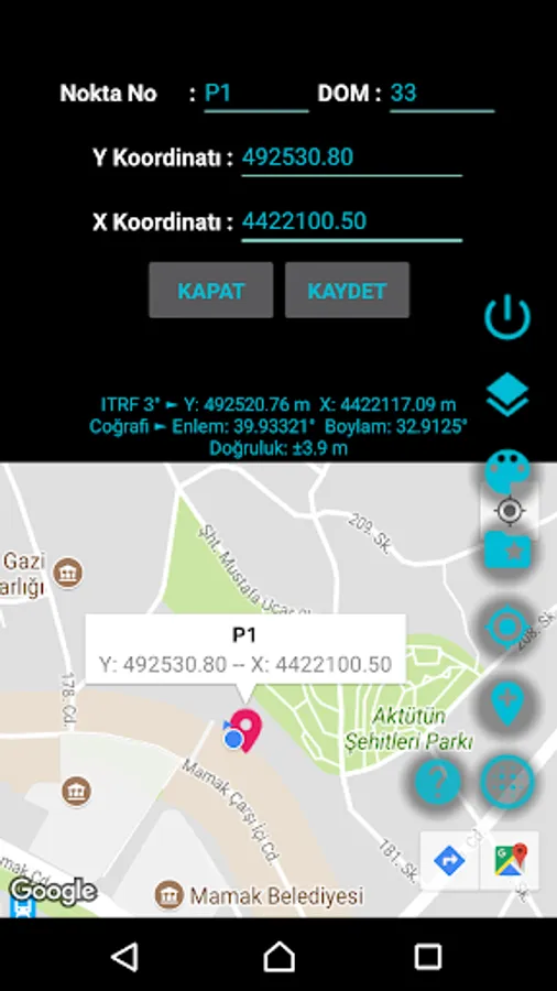 The TONOZ app is an application that allows you to measure in WGS84 geographic coordinates and ITRF96 3 ° coordinate system.