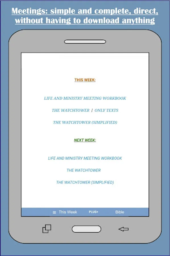 Full weekly meeting in one place. Easy to use and to the point, no need to download anything.
