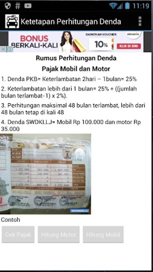 Aplikasi ini memudahkan anda bila ingin membeli kendaraan baik mobil atau motor yang sudah telat pajak, sehingga anda mudah memperkirakan apakah harga kendaraan sesuai apabila sudah ditambah denda pajak. Semoga aplikasi berguna bagi anda semua. Terimakasih.