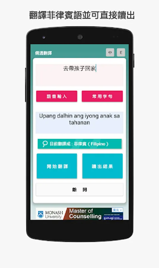 - Optional translation can be translated into: Chinese, English, Filipino and Indonesian