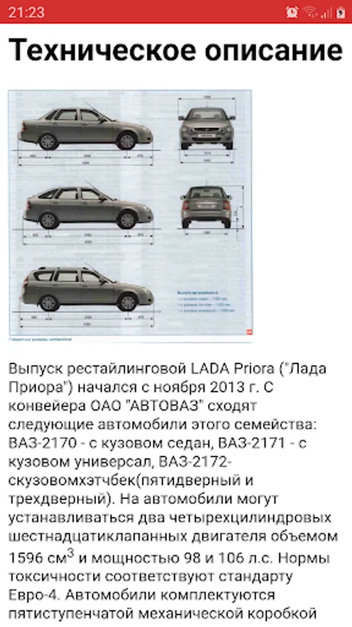 Lada Priora (Lada Priora-2170-21723) is one of the most common car models in the vast Russian region. The application is an electronic version of the manual for the repair and operation of this vehicle, which will always be at your fingertips.