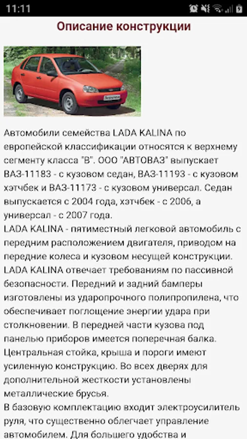 Lada Klina is one of the most common car models in the vast Russian region. The application is an electronic version of the manual for the repair and operation of this vehicle, which will always be at your fingertips.
