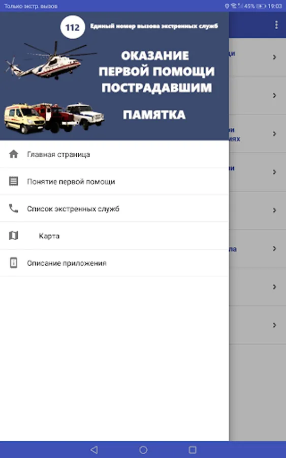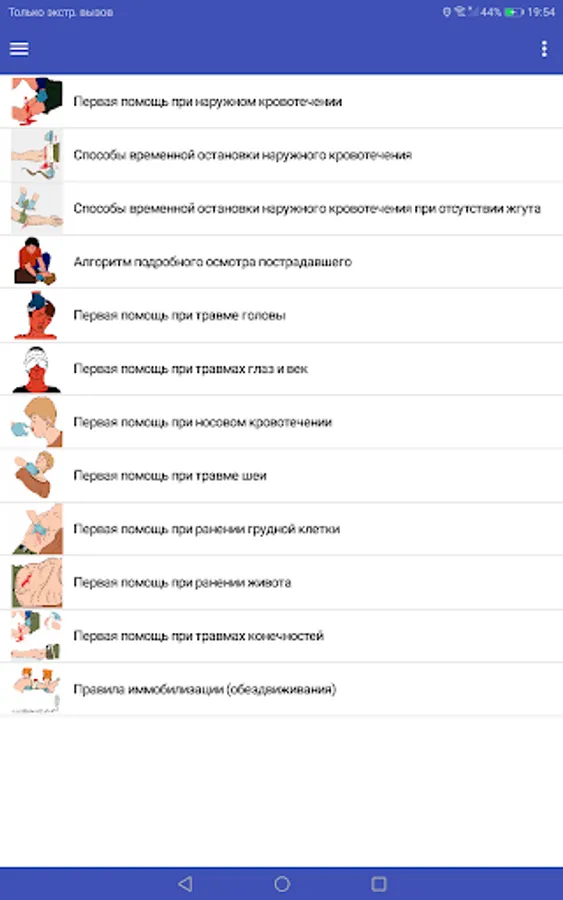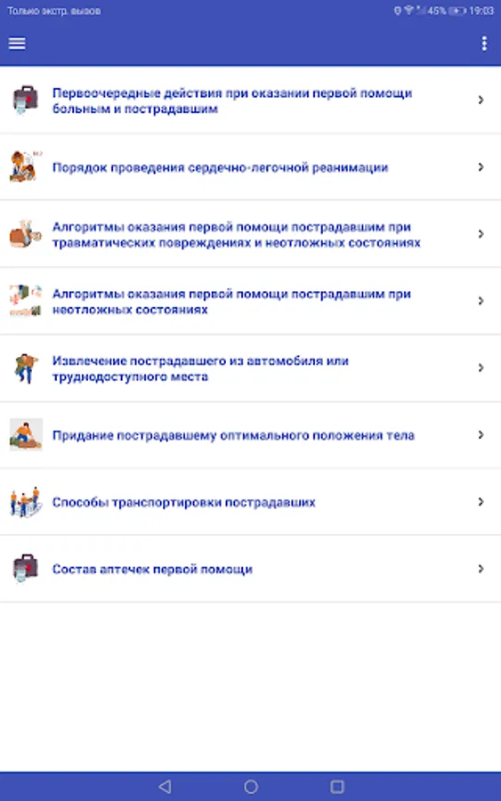 The application is designed to meet modern Russian and international requirements for first aid. All materials are in compliance with current Russian legislation. The application is well illustrated and clearly demonstrates the techniques of first aid in various conditions and injuries.