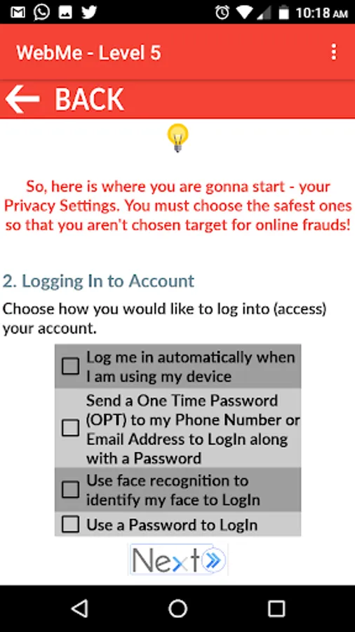 So, here's the solution - WebME, The CyberSecurity Game. WebME is an Award Winning game that makes you feel as if you are actually using the Internet. But the condition is that, whatever you do in this space must be within the limits of Cybersecurity. You must remain CyberSafe till the end in order to complete the levels WebME has to offer. So get ready to learn about all the online loop holes and vulnerabilities and their solutions - lessons ranging from connecting to the internet to becoming Internet Savvy and Social.