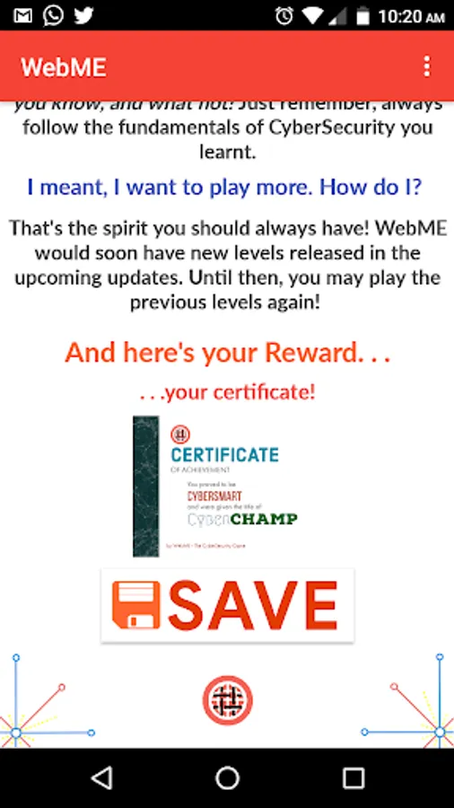 And what's more, you even get a cool certificate on completing the game which you can boast of as a proof of CyberSmartness!