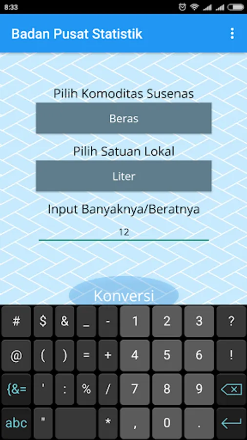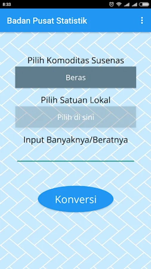 Susenas conversion is a tool to facilitate application enumeration officers Susenas Module Consumption / Expenditure. This application is used to convert the amount of food commodity from the local unit to unit standards already set in the document Susenas Module Consumption / Expenditure.