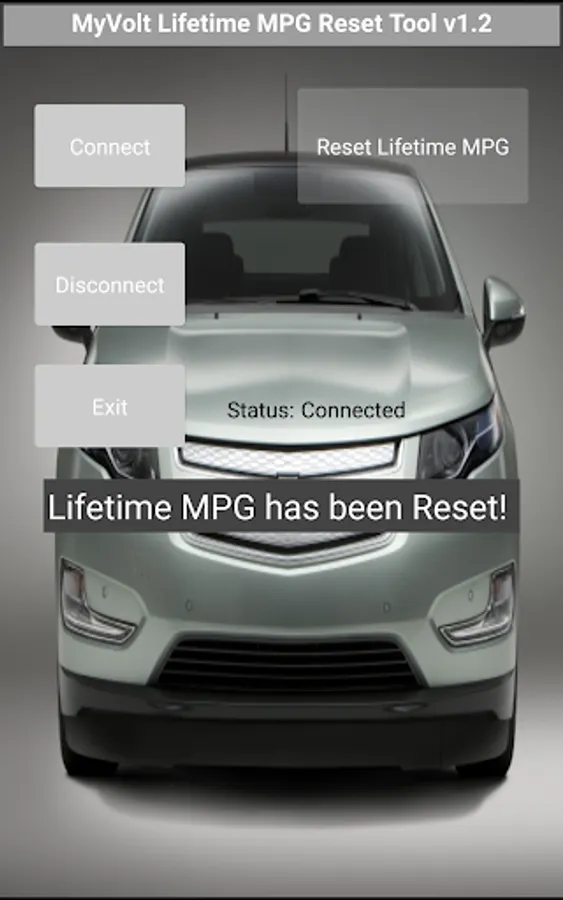 My Volt Lifetime is a quick tool to reset lifetime MPG for Chevrolet Volt 2011 - 2015 with a OBDLink MX bluetooth or compatible elm327 bluetooth module. Not every elm327 bluetooth module will work with this app. If you get any errors or a check engine light please do not continue using myvolt tool or try using a different elm327 adapter. For the most compatibility please use Scantool.net OBDLink MX bluetooth adapter. Compatible with Chevrolet Volt 2011 - 2015 and Opel Ampera 2012 - 2015