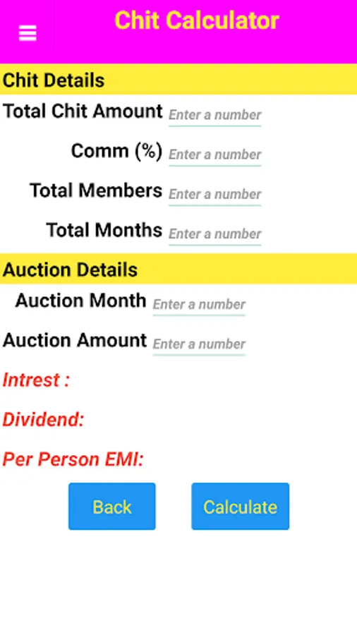The fundamental object of this app is to calculate the intrest amount on your chit.