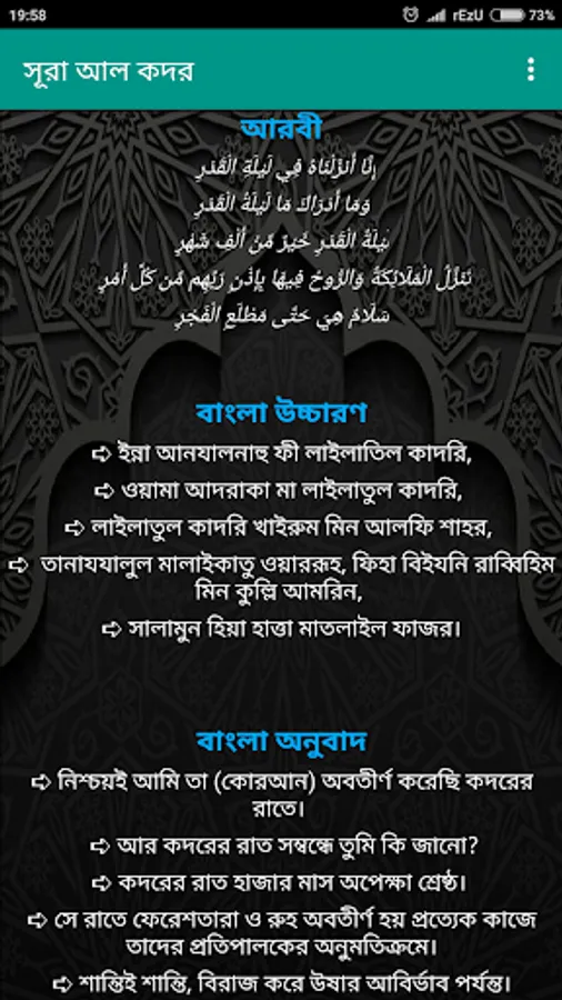 যে সকল সূরার বাংলা উচ্চারণ ও অনুবাদসহ দেয়া হয়েছে -