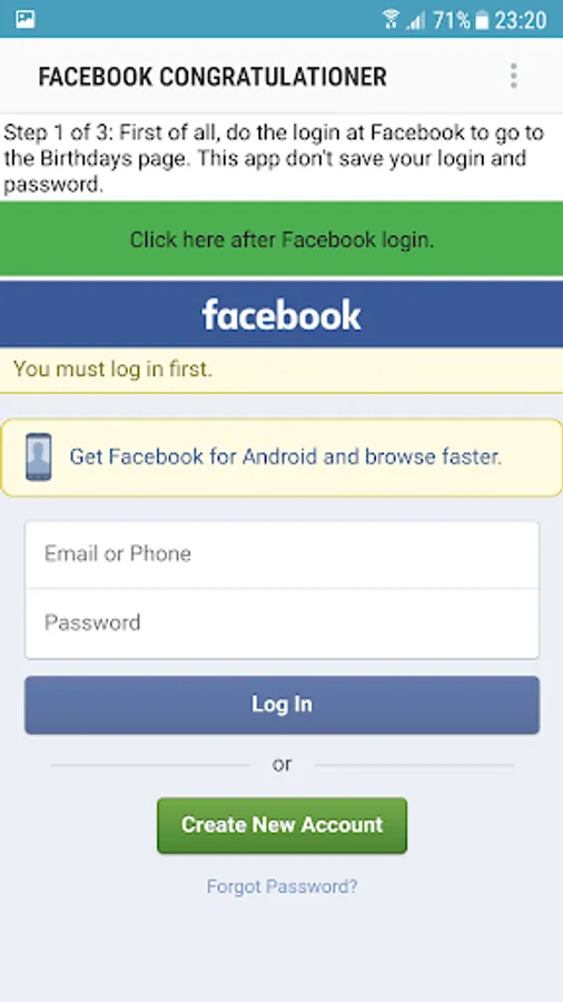 Create a standard birthday message. Access this app at least once a day and send this message to all your birthday friends by simply pasting this message to them simply and quickly.