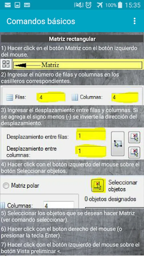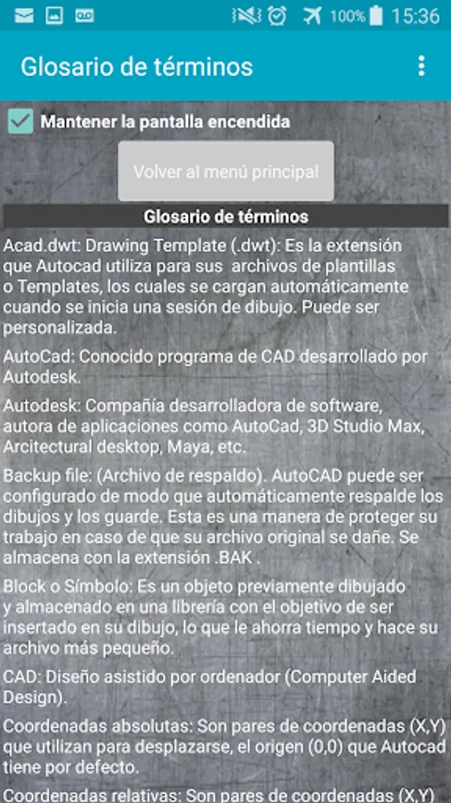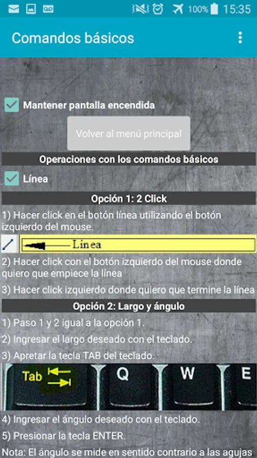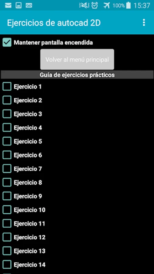 This app contains an exercise guide and an explanation of the basic commands to start drawing in auto-cad 2d.