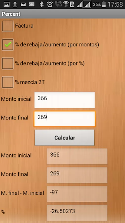 * Calculating the final amount of increase or reduction by entering the initial amount and%