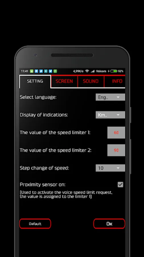 - set the voice speed limit. It is enough to activate the request and say something like "Limit 50" or "Here the speed is fifty kilometers per hour" - any phrase with the content of the digital value - the application will try to determine in the above a digital value, otherwise it will repeat the request again. Unfortunately, this does not always work because of the presence of noise;