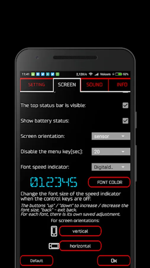 The GPSpeedometer has the ability to flip the image for reflection in the windshield of the car (mirror mode (HUD)). There are both vertical and horizontal working positions. The readings can be displayed as in km / h, miles per hour or knots.