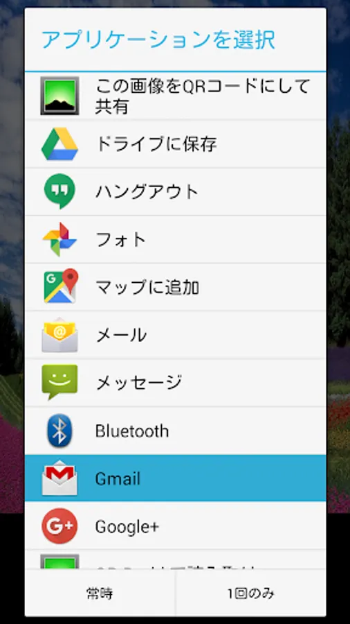(2)端末にある共有機能のあるアプリ一覧が表示