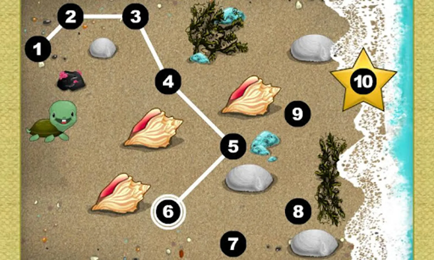 Baby Turtle is stuck on the beach and she needs your help to get to the sea! Connect the dots to show her which way to go.