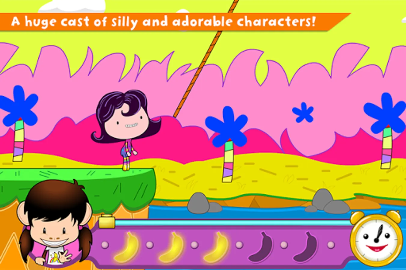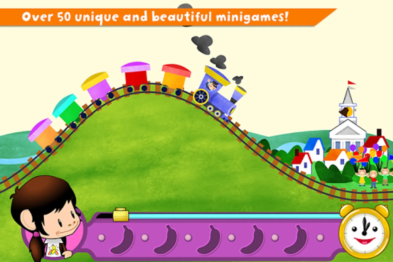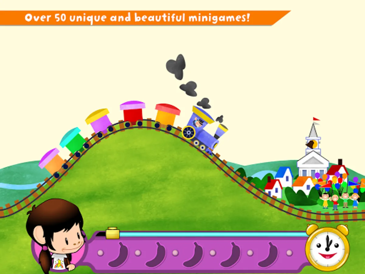 Monkey Preschool has gone bananas! Join Zuzu, Mr. Clocks and a bunch of dancing bananas in a colorful collection of over 50 wacky games and surprising puzzles. Starring an enormous cast of lovable characters, Zuzu’s Bananas is a free-wheeling arcade where little gamers pop popcorn, teach rabbits how to share, and help keep monsters out of the rain.