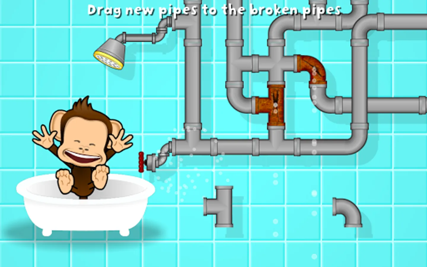 * Rub-A-Dub-Flub. Monkey needs a bath, but the pipes are broken! Match the puzzle pieces to fix the pipes.