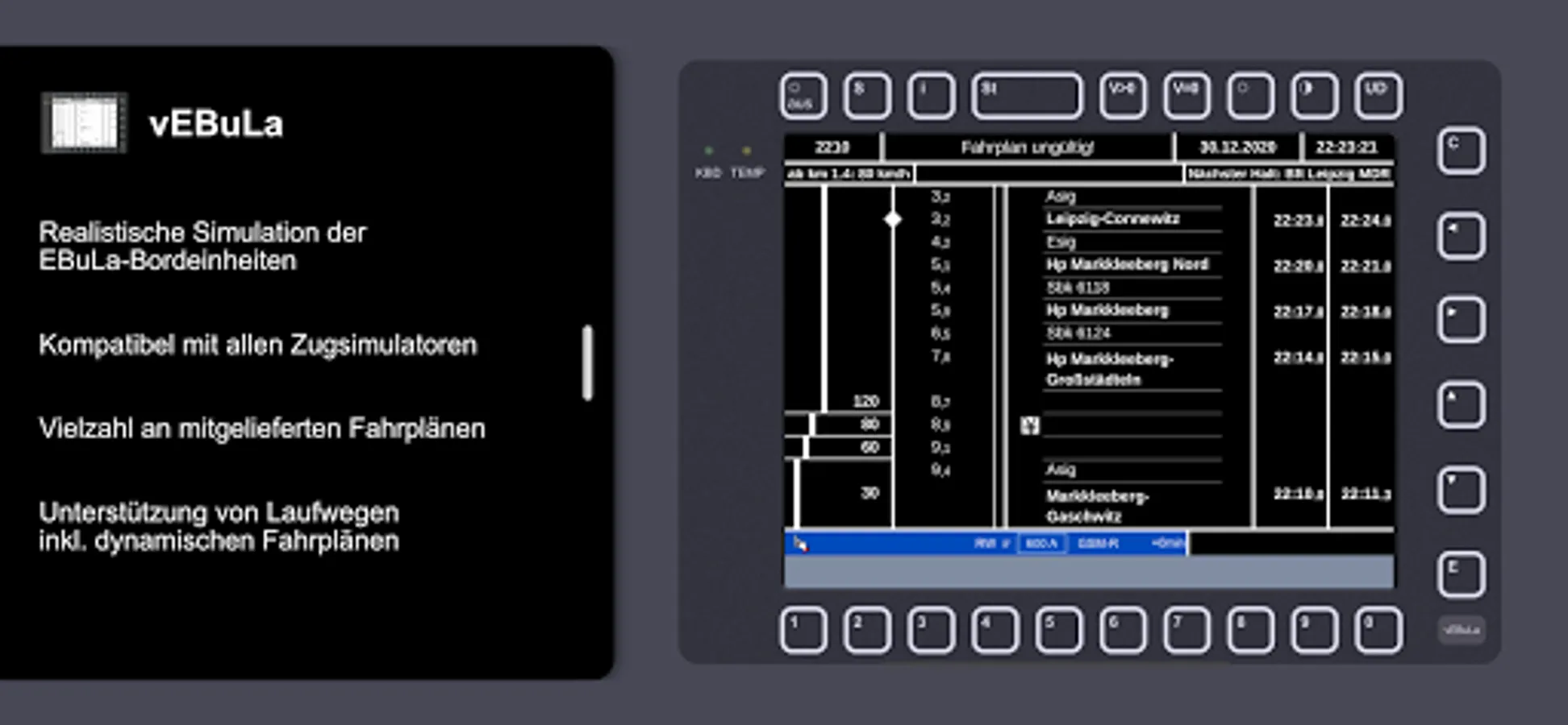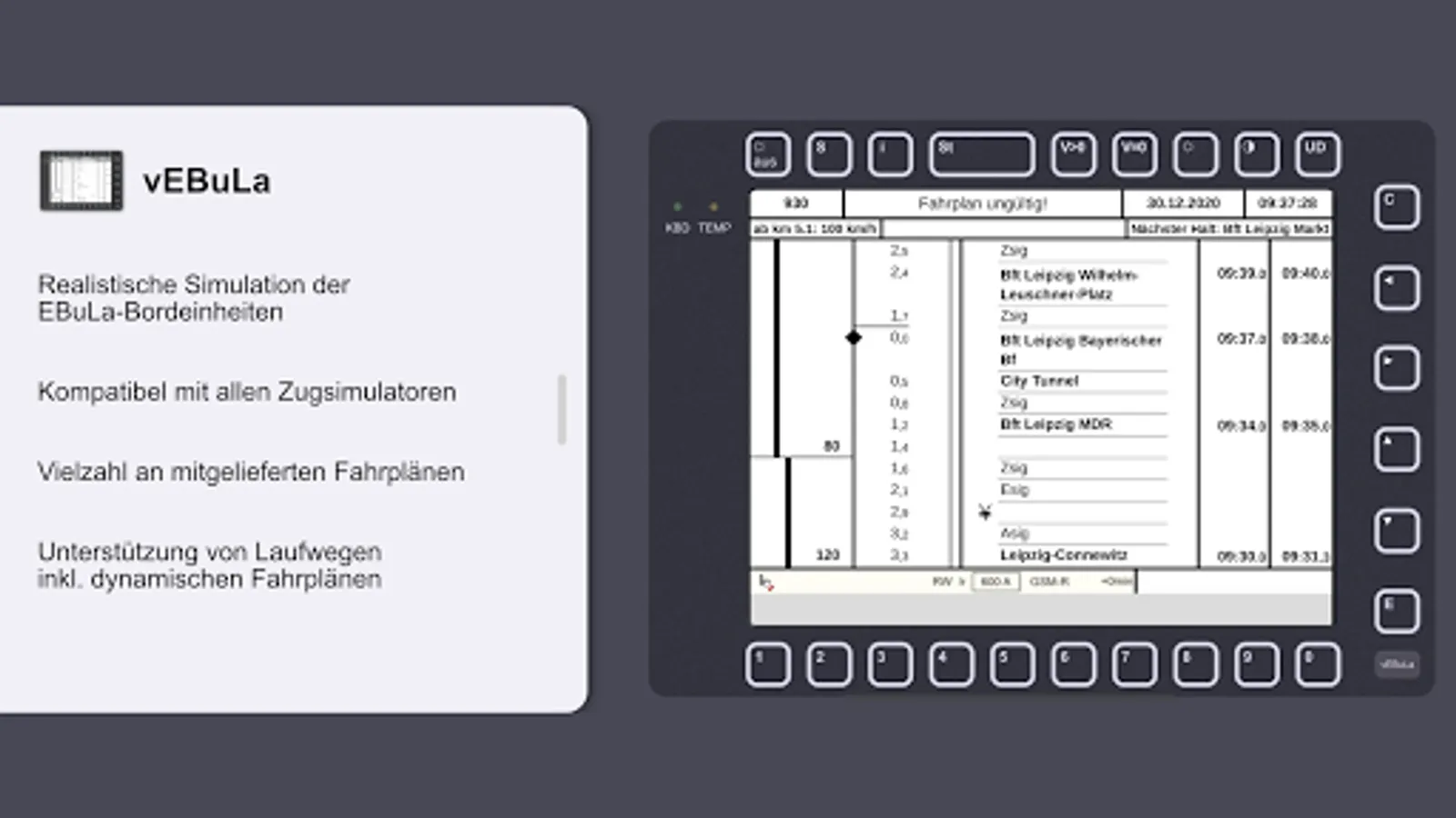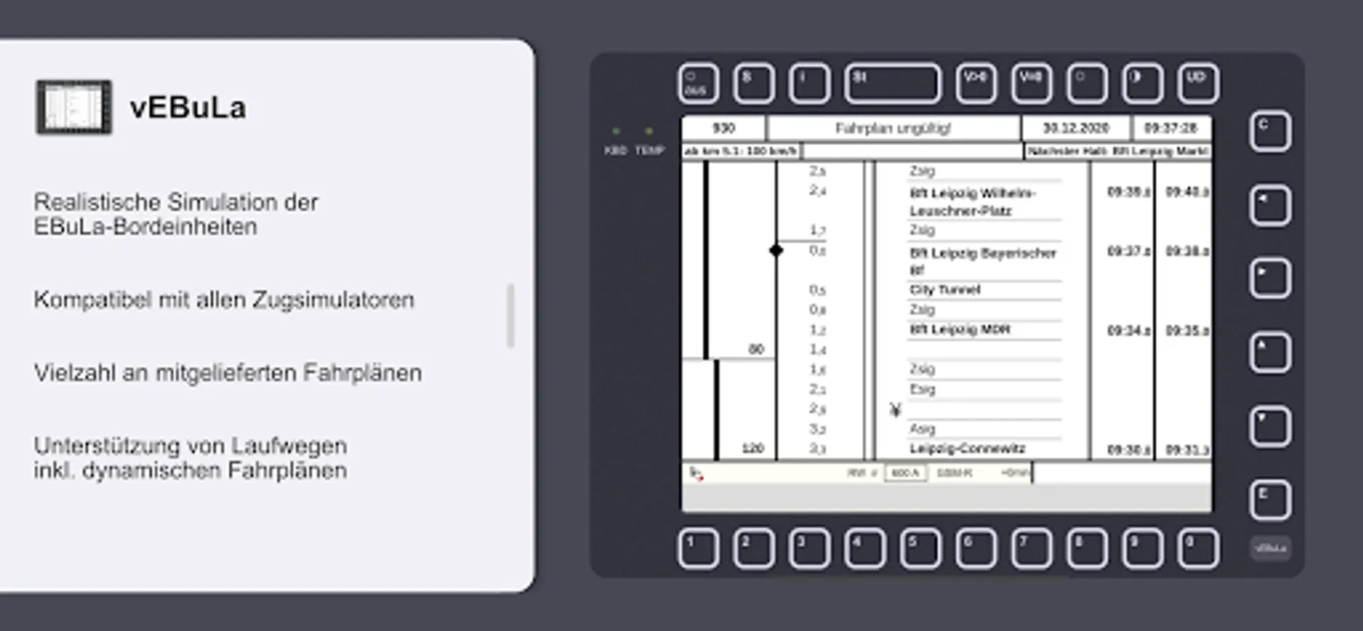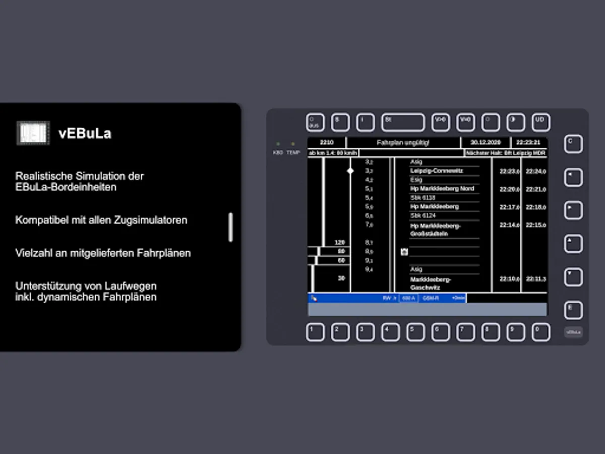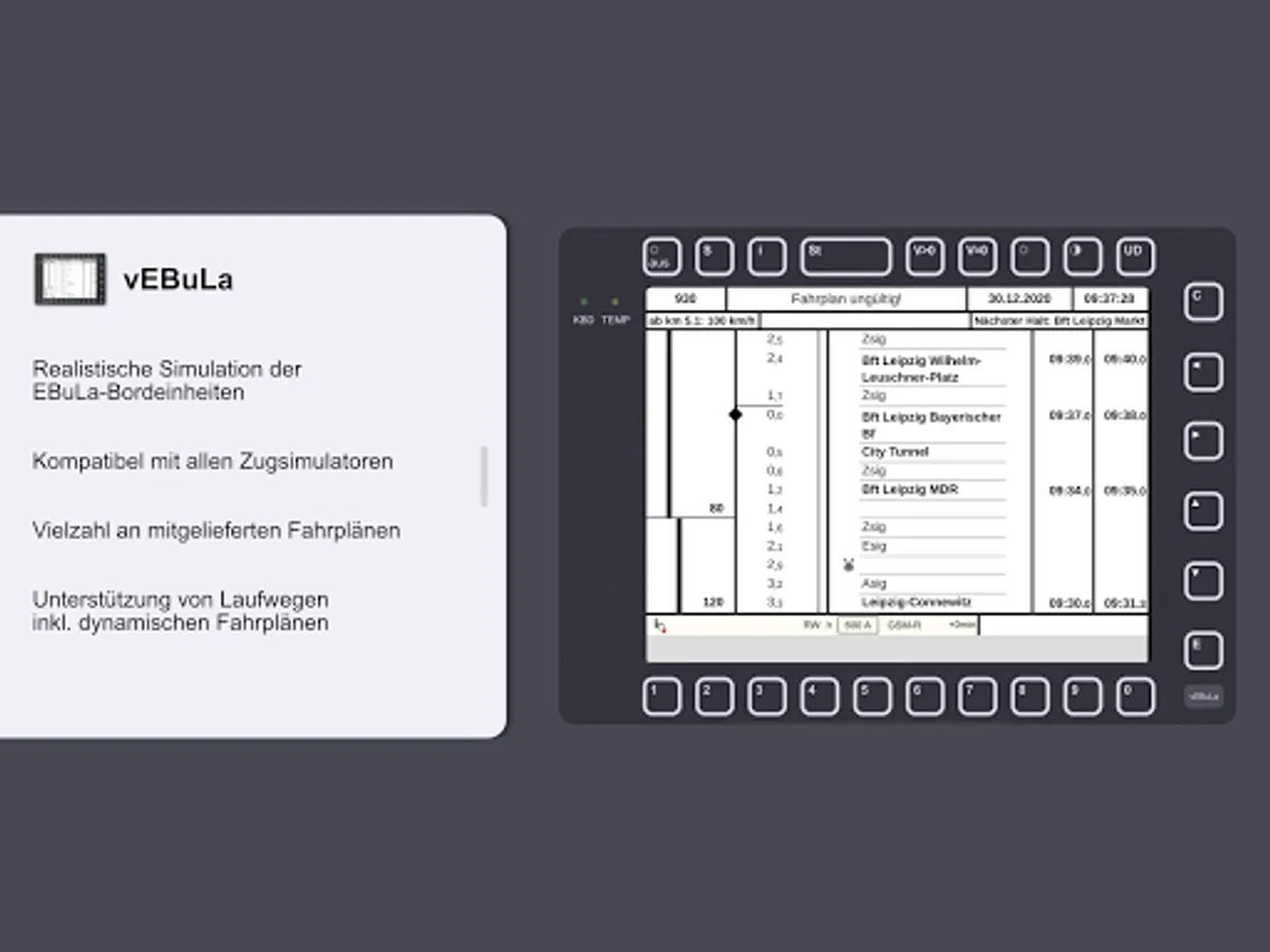 With vEBuLa you get a detailed simulation of the EBuLa on-board devices of modern locomotives, fully compatible with all common train simulators. Choose from a variety of instantly drivable timetables or create a new timetable based on defined routes for a quick game.
