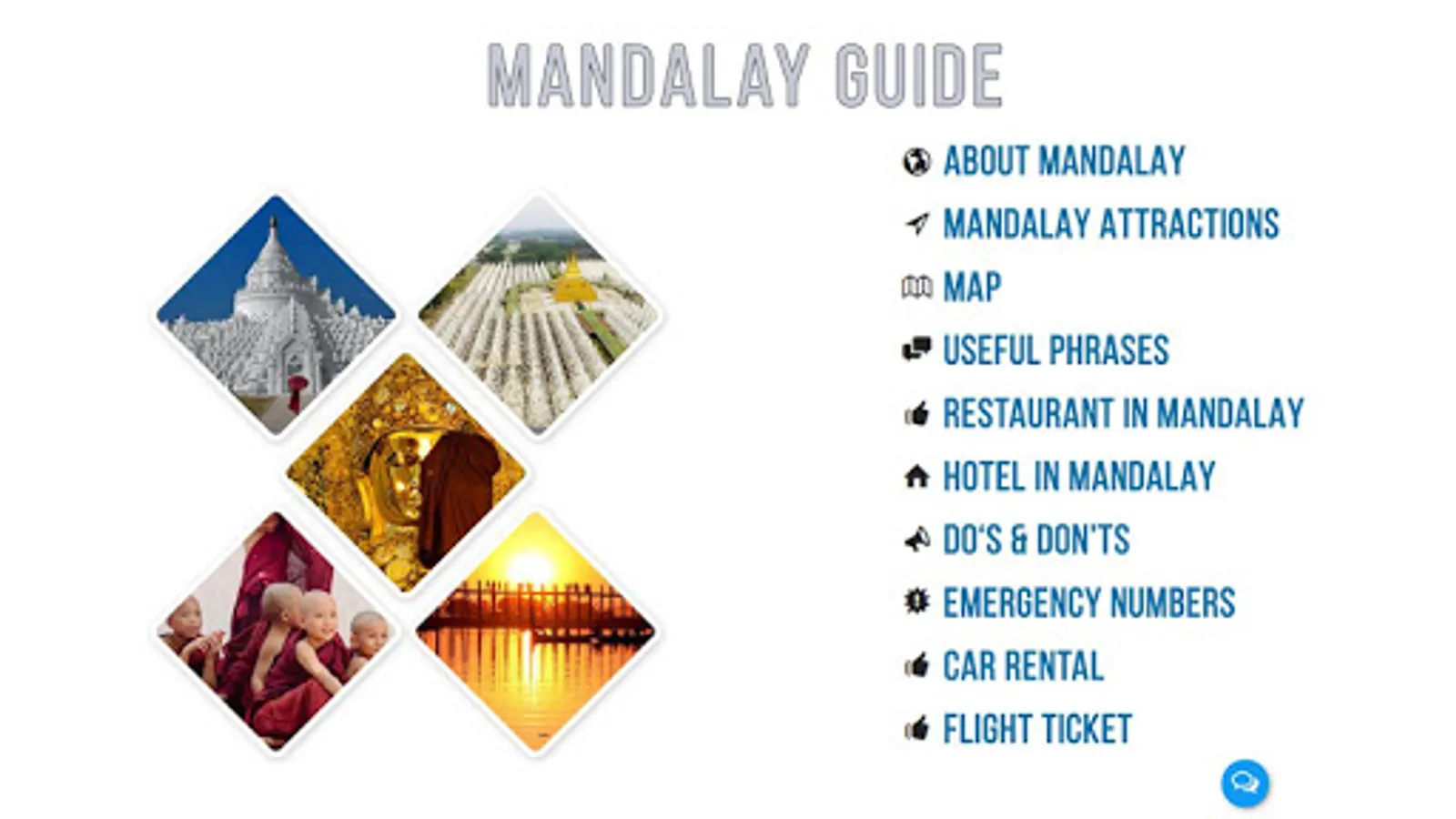 Here's a roundup of our must-see sights and tips as well as some unique Mandalay ( Myanmar ) experiences and quirky. getting away; accommodation; eating out; emergency number; useful information and more…