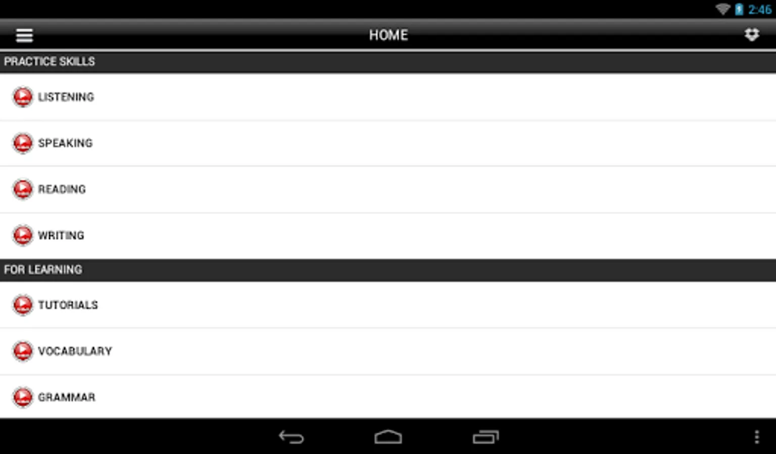 The app provides an intelligent way which helps learner easily practice skills, remember vocabulary, and be impressive what learned.