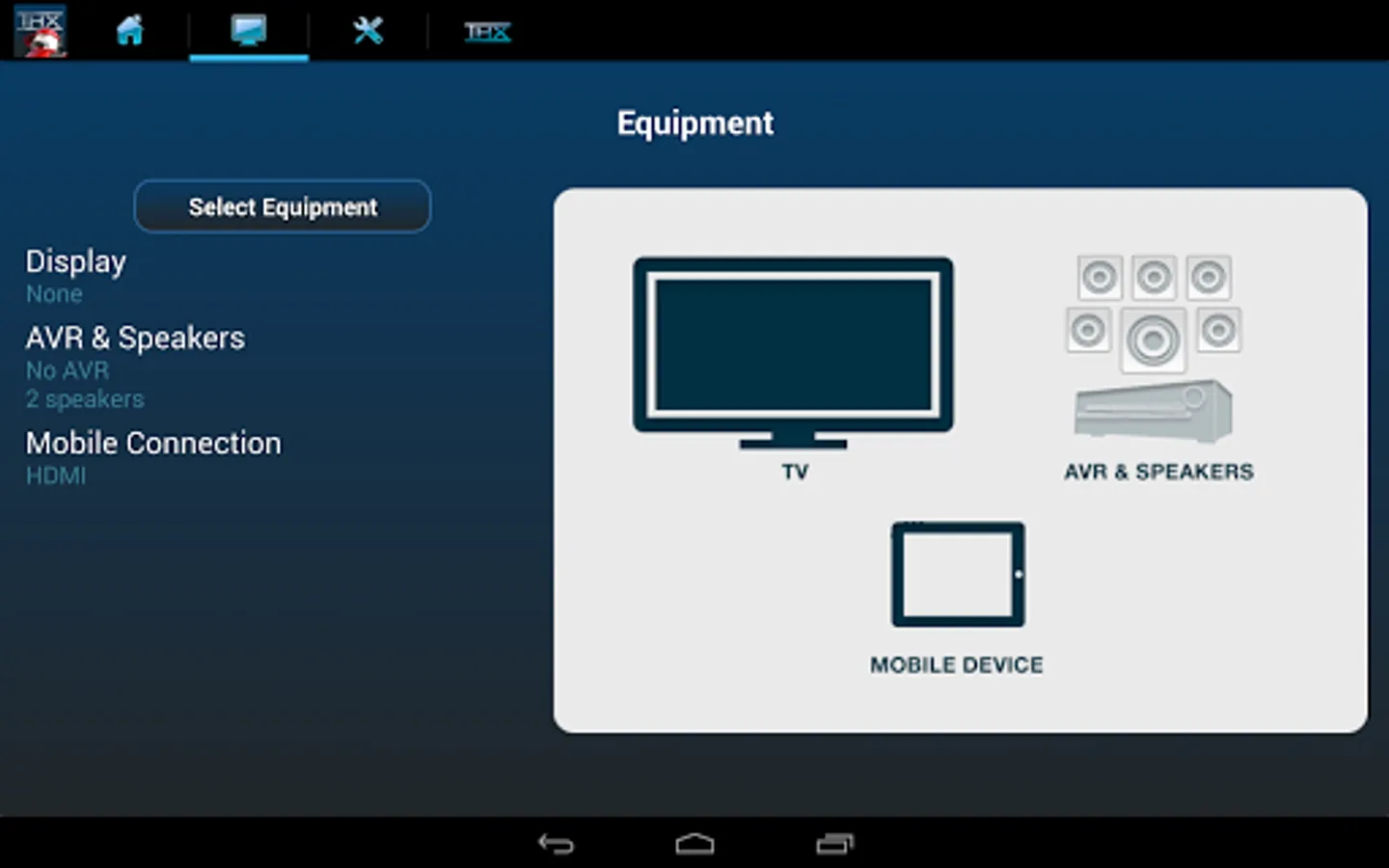 To connect your Android to your TV, projector or AVR you must use an HDMI cable & an HDMI adapter that is compatible with your specific Android device. You should be able to see the Android screen on the TV or projector and hear audio from it BEFORE you use THX tune-up.