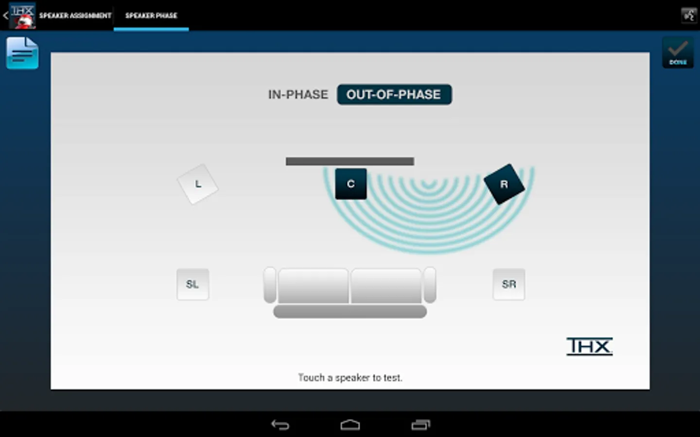 To run the sounds tests with an AVR, set the AVR to Direct, Auto Detect mode or equivalent. If your AVR does not have this mode, it may not accurately process AAC 5.1 audio tones. Also, check the specs for your Android device. Some Android devices “virtualize” surround sound audio and will mix and play audio on multiple speakers, even though audio signal may only be on one or two channels – as in the Speaker Assignment and Speaker Phase tests in THX tune-up. In either or both of these cases, the results of the 5.1 speaker/sound adjustments may not be accurate. This is not a problem with the app but due to audio processing of the AVR or Android device.