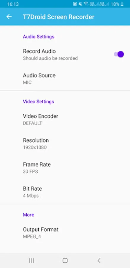 T7 Droid - Screen Recorder is a lightweight Android app developed for "old devices" that does not have a native screen recorder yet (Lollipop 5.0 up to 9).
