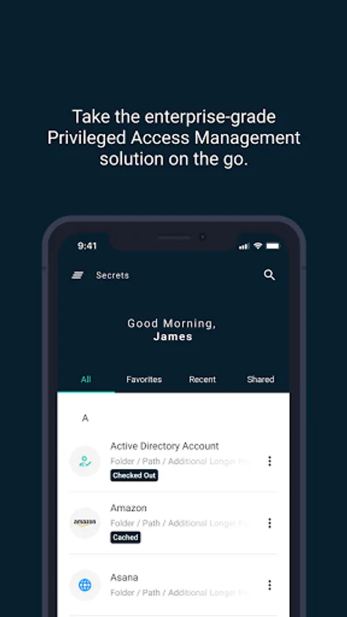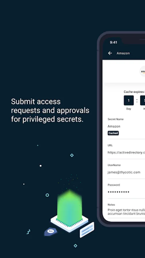Secret Server Mobile provides remote access to secrets from Thycotic Secret Server or Secret Server Cloud