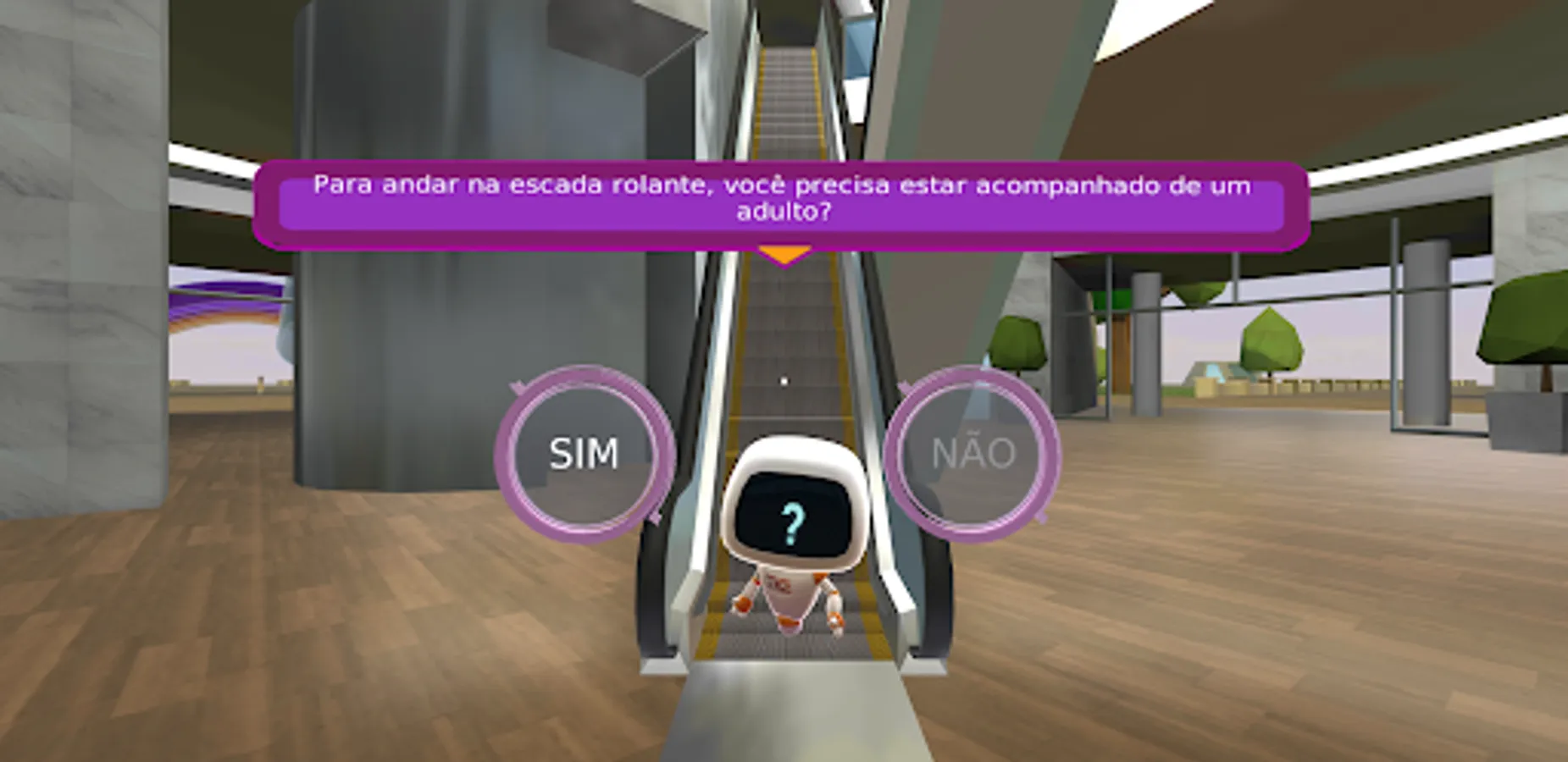 You will be guided to the top of the tower, finding mobility equipment that you use in your daily life, such as elevators, stairs and moving walks along the way, being challenged to answer some questions about the correct use of these equipment. Stay tuned throughout the route, as you will receive the help of a virtual tutor and the heroes Elevita, Super Zero and Segurita, through audio and signs in the environment, as well as guidance on how to use the equipment safely.