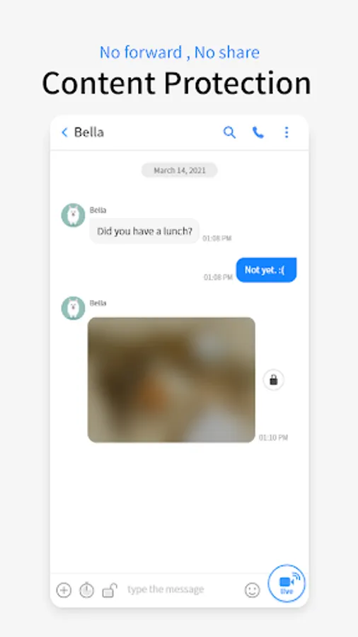 There is an OFF function where you cannot save photos or videos you have sent or share them with others.
