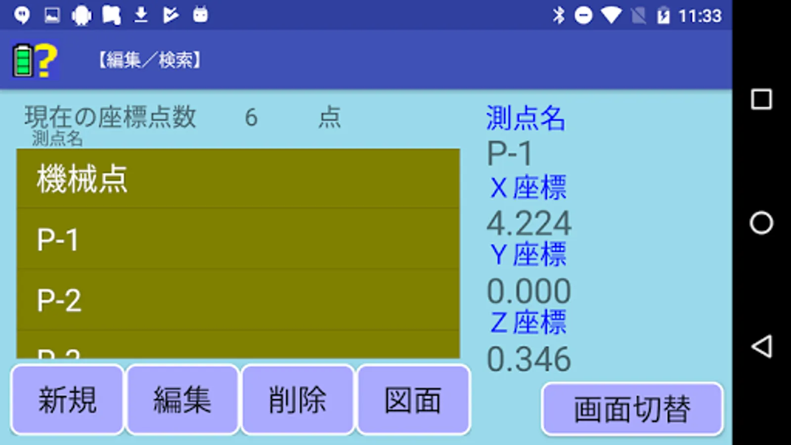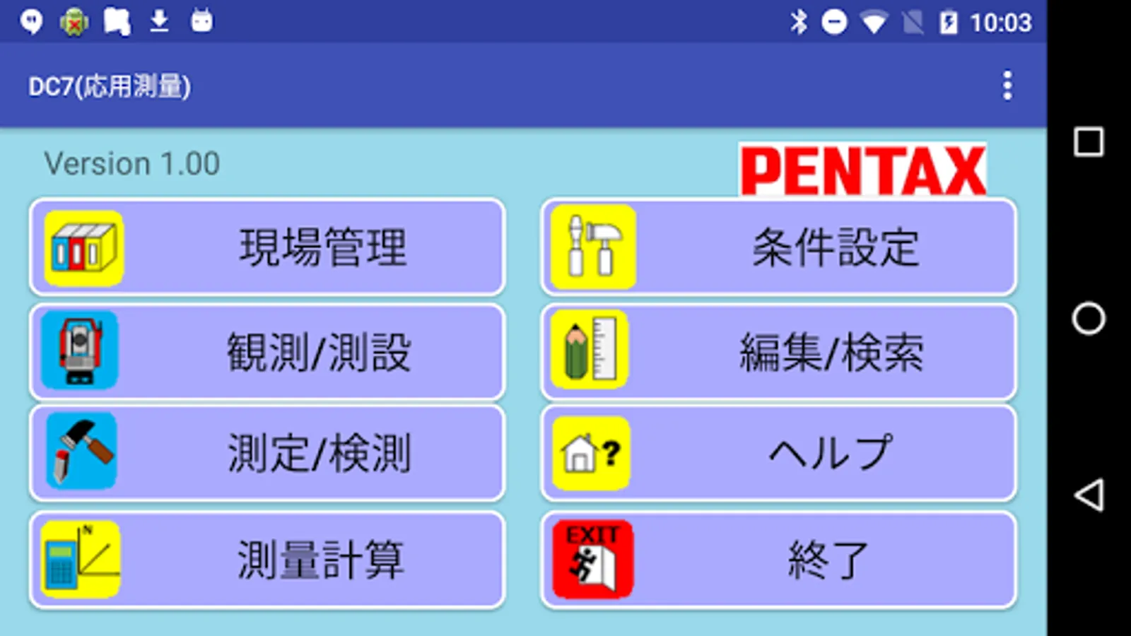 このアプリでは、PENTAX測量機のX-100の機械点設置から座標測定/記録、座標測設、各種計算、ファイル出力、メール送信まで行う事が出来ます。また、GNSSのG6を用いたVRS観測をすることも可能です。