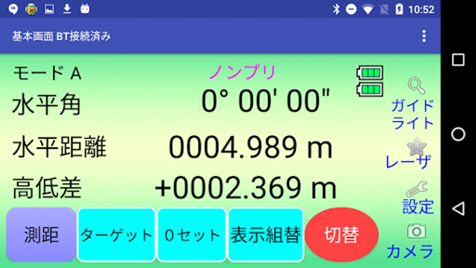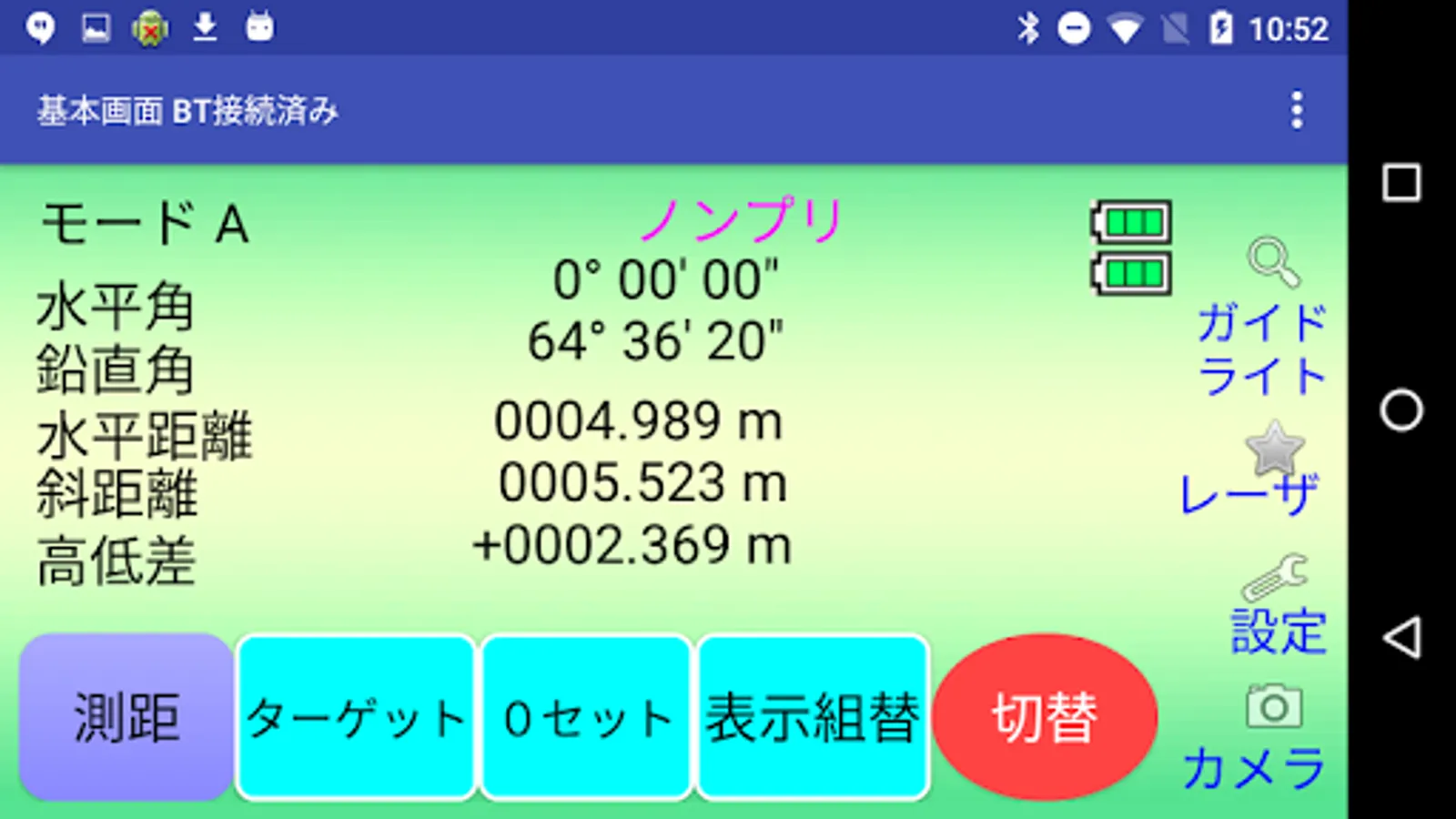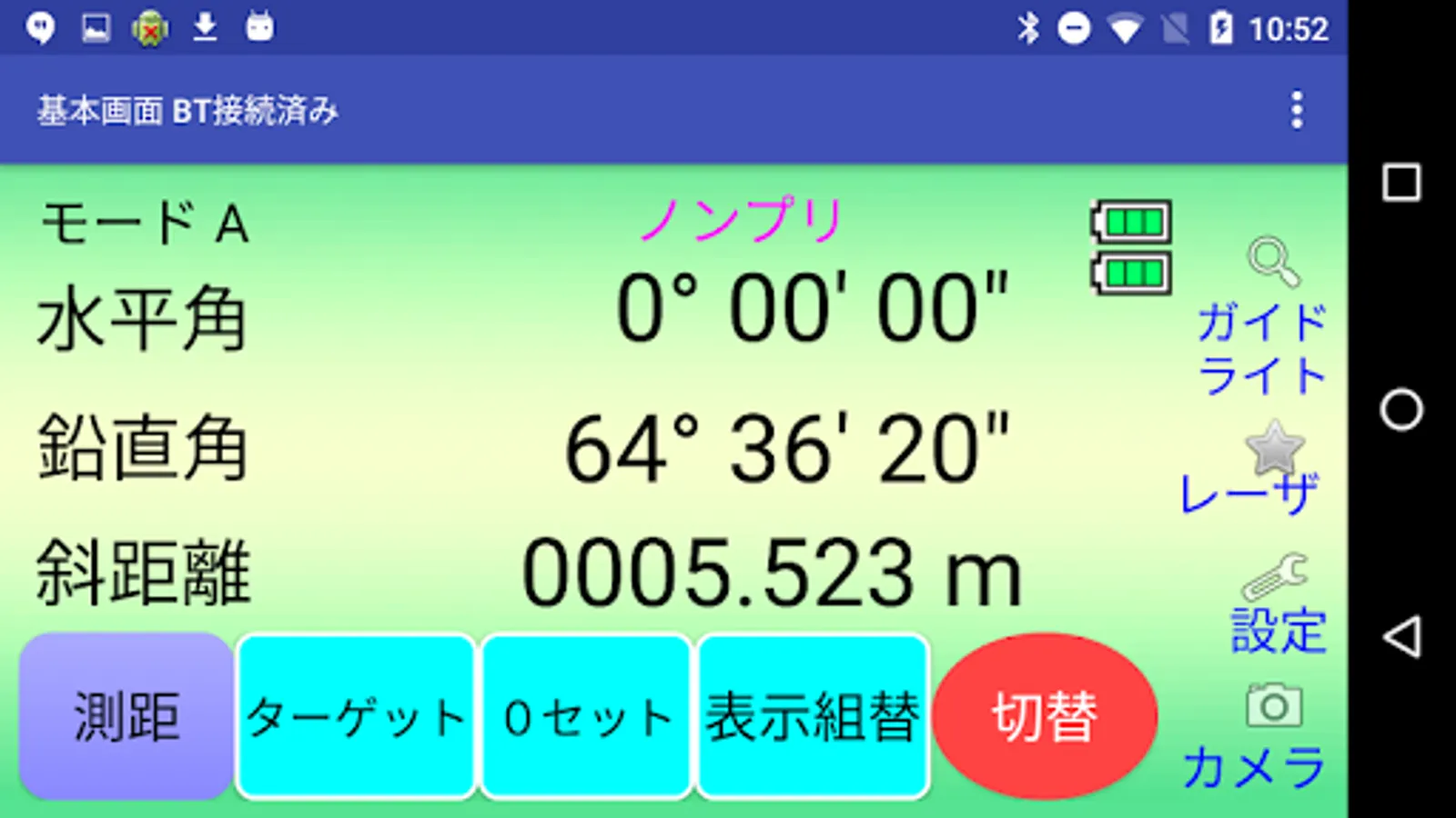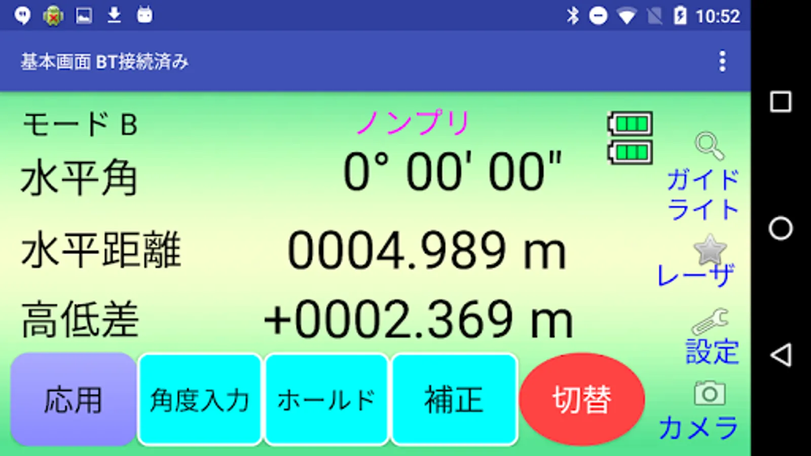 このアプリでは、PENTAX測量機のX-100を用いた測距/ターゲット変更/0セット/角度入力/ホールド/補正値設定/各種設定を行う事が出来ます.