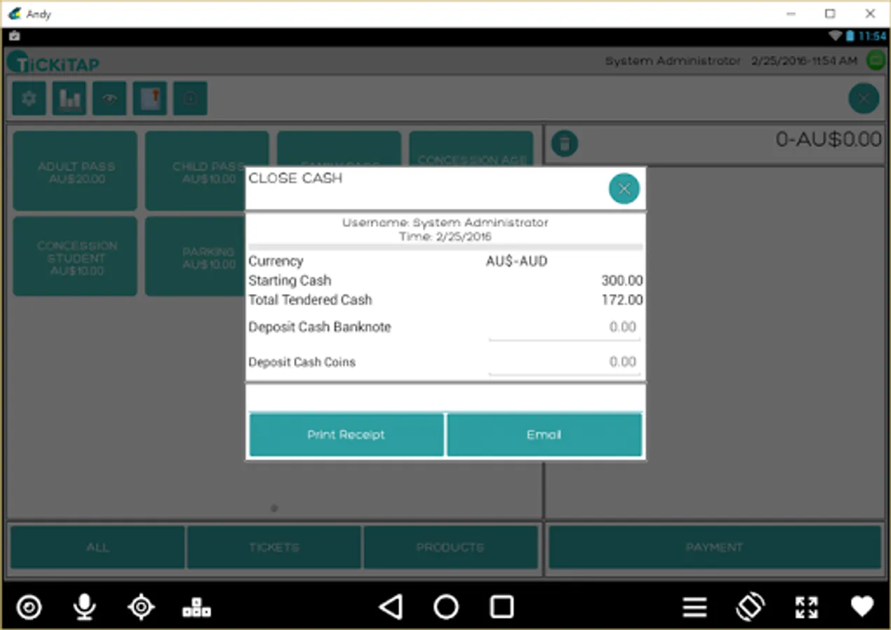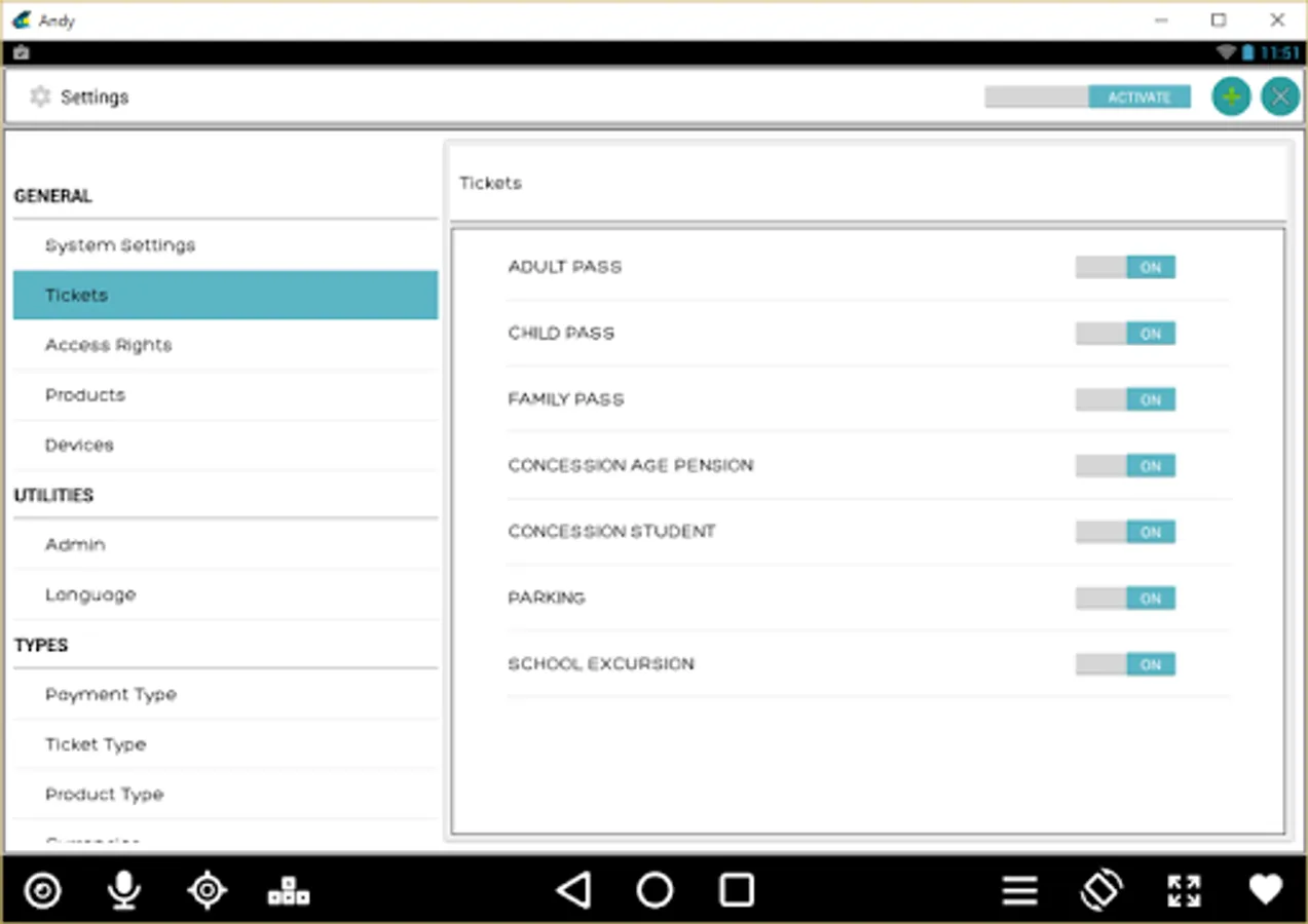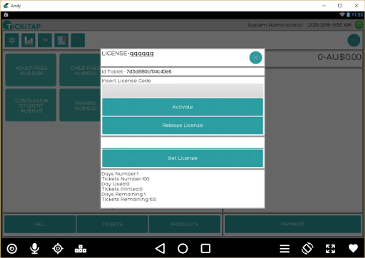A complete Ticketing App for manage point of sale and sell ticket available for print ticket and receipt in FGL or ESC/POS. Summary report for consumables and tickets. Feature to send data to web server TickiTap for reporting and integration with access control system.