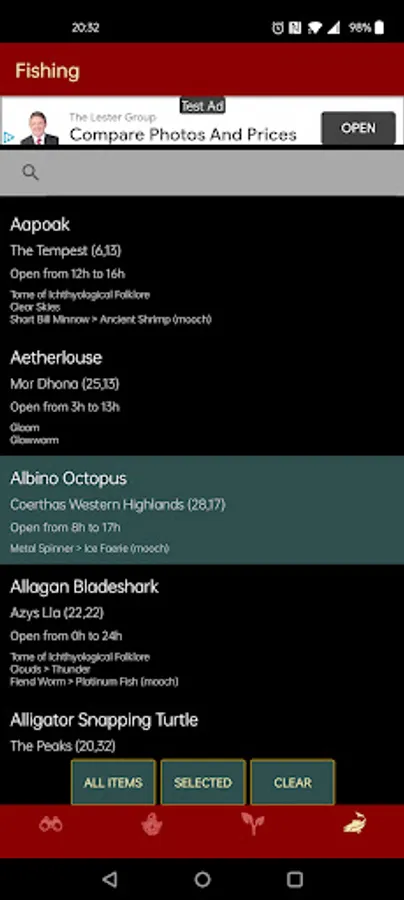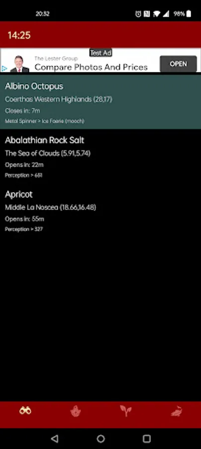 The app contains information about the time of day each node/spot is open in game time, possible requirements and location.