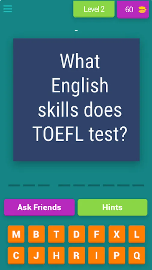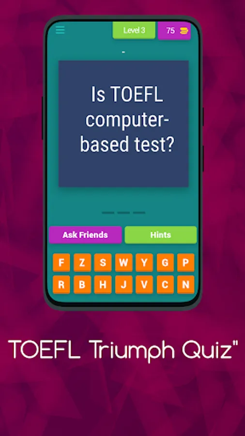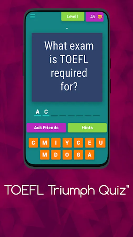 Step up to the thrill of learning with our 'TOEFL Triumph Quiz', an engaging, fun and educative trivia and quiz game! Tweaked to help test, improve and expand your English language proficiency, TOEFL Triumph Quiz boasts exciting game modes like the classic quiz, online duels, daily tasks, and special missions that will keep you glued to your phone screen. Dive into a world of knowledge, challenge your limits and emerge victorious! 🏆