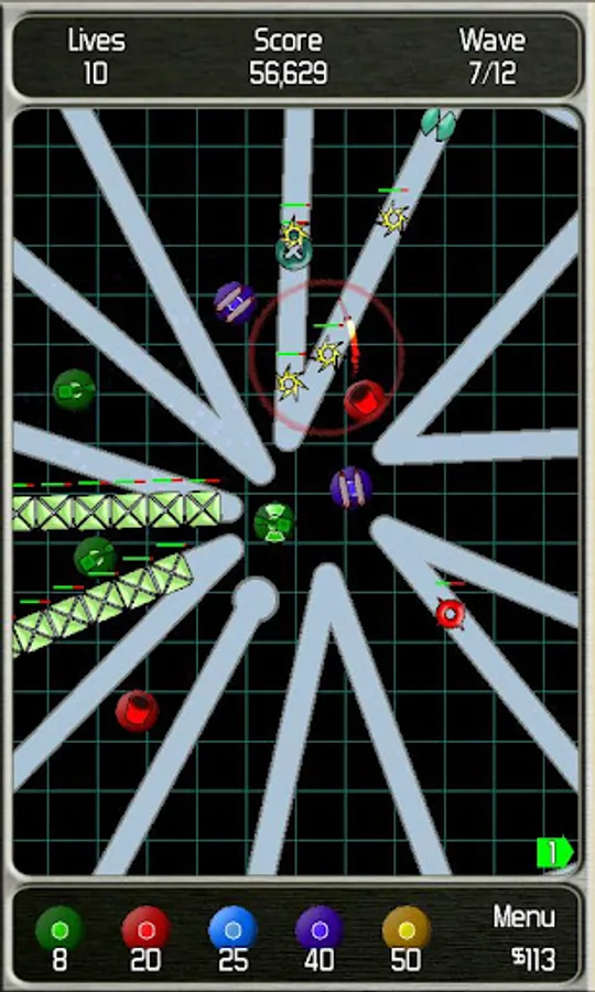 Featuring 5 tactically distinct towers, 16 enemies with unique features and a large (and growing!) selection of maps to challenge all skill levels. There are currently 48 maps. Some are really hard, but it is possible to out think them all!