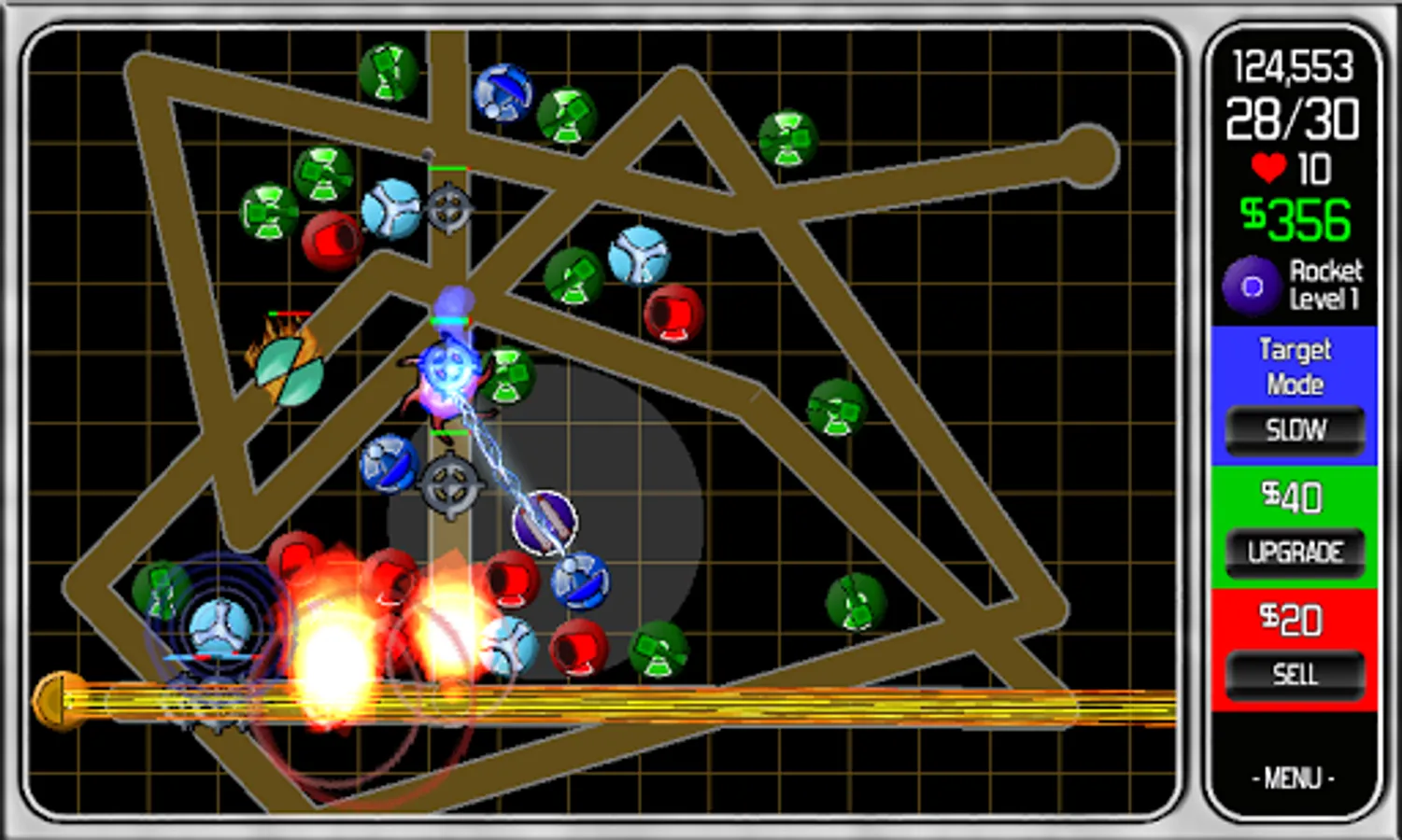 The towers have selectable targeting modes to help them hit the target you want.