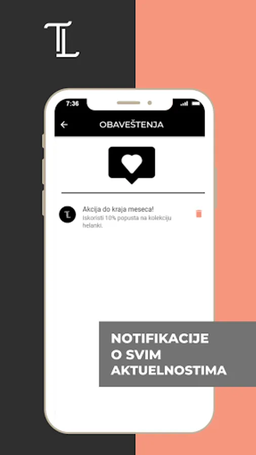 Postoji odeljak za prijem, odnosno čitanje notifikacija gde se planira slanje obaveštenja o popustima i novim proizvodima i za druge svrhe neće biti korišćena.