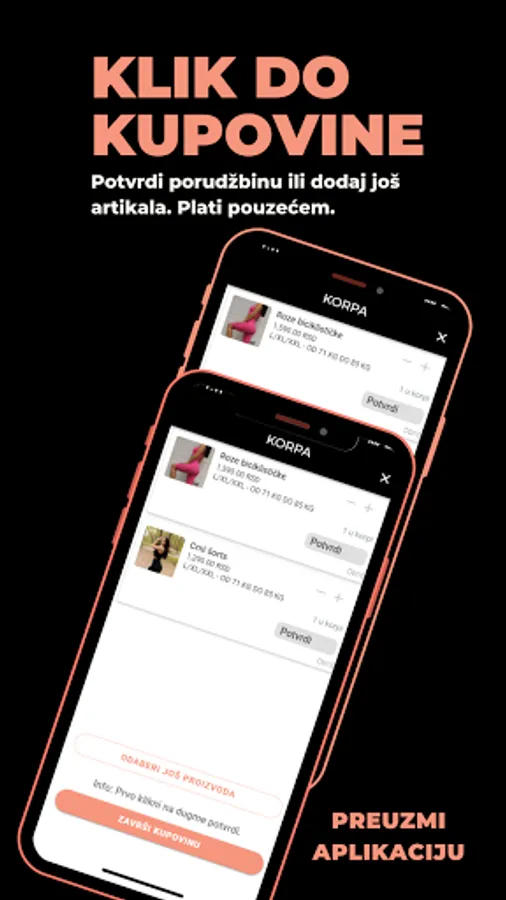 - Željene artikle dodaš u korpu, ali prethodno odabereš veličinu