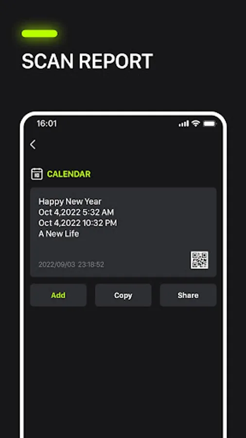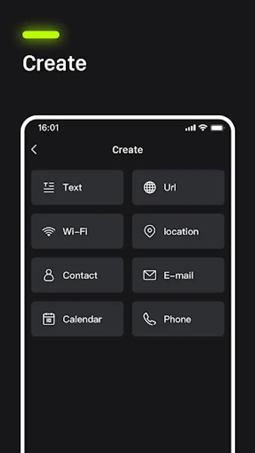 Other options: create QR, scan images, scan from the gallery, and share your contact information through QR