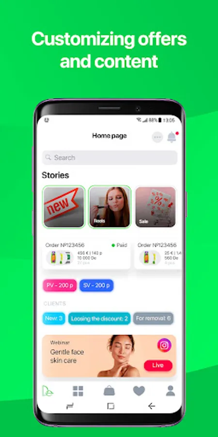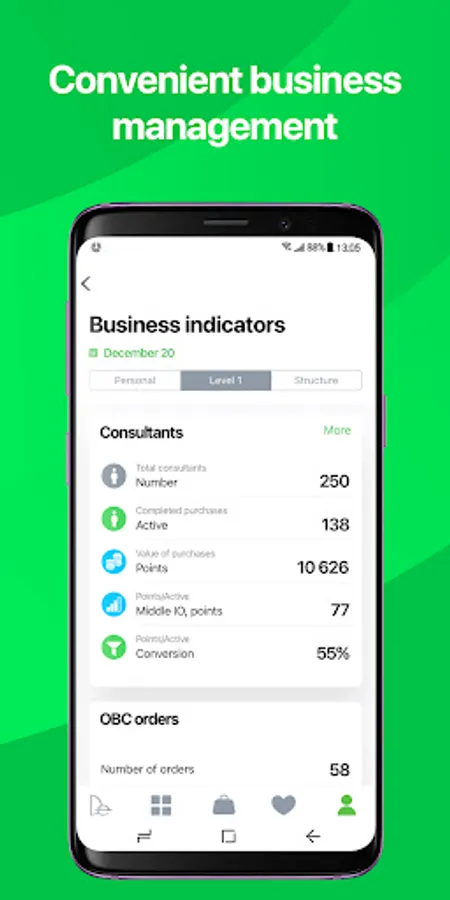 Analyse your business indicators, manage your structure, register new clients, share links with recommendations, and communicate with your team.