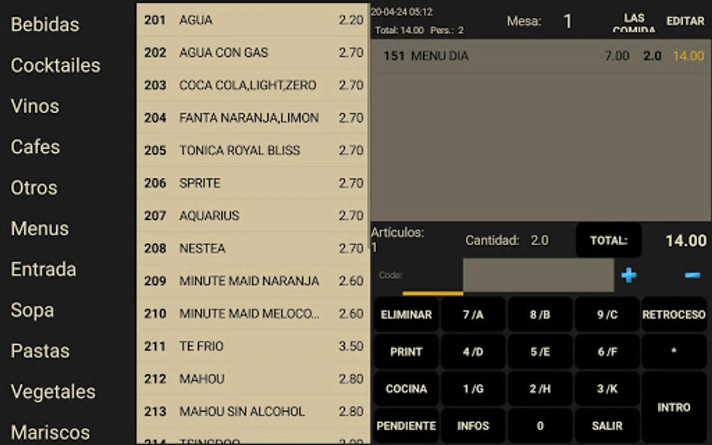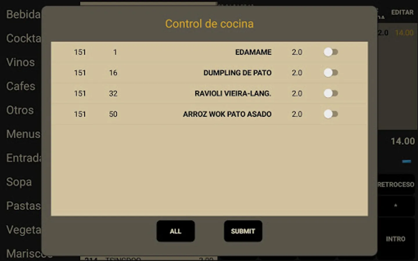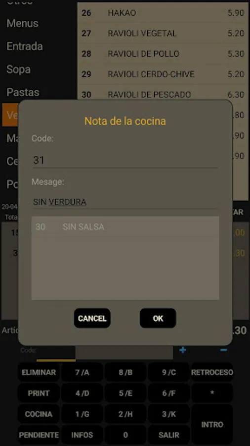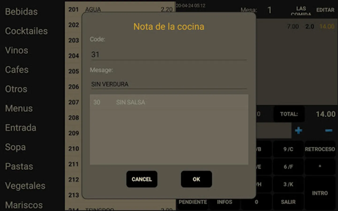- The message for the kitchen can be added to the kitchen preparation menu.