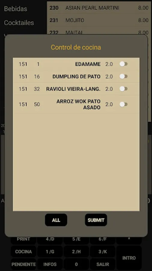 - The kitchen preparation menu can be printed step by step and selectively.