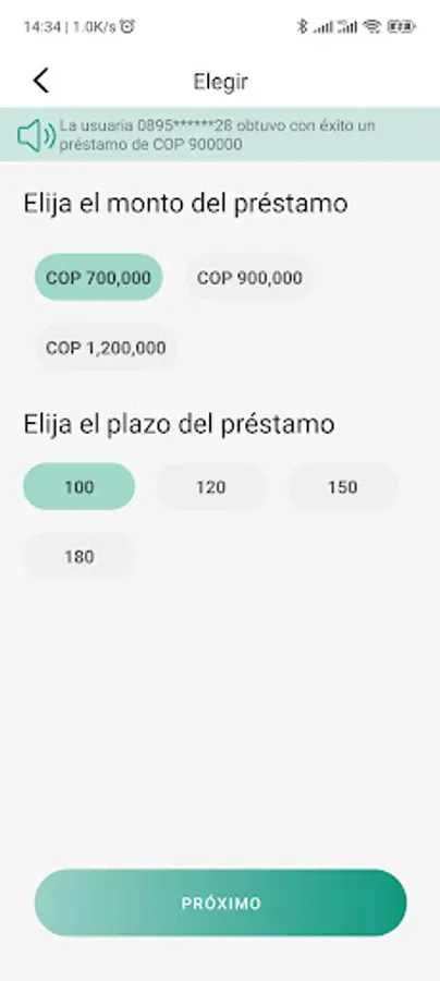 Monto del préstamo: de COP $50,000 a COP $2,500,000